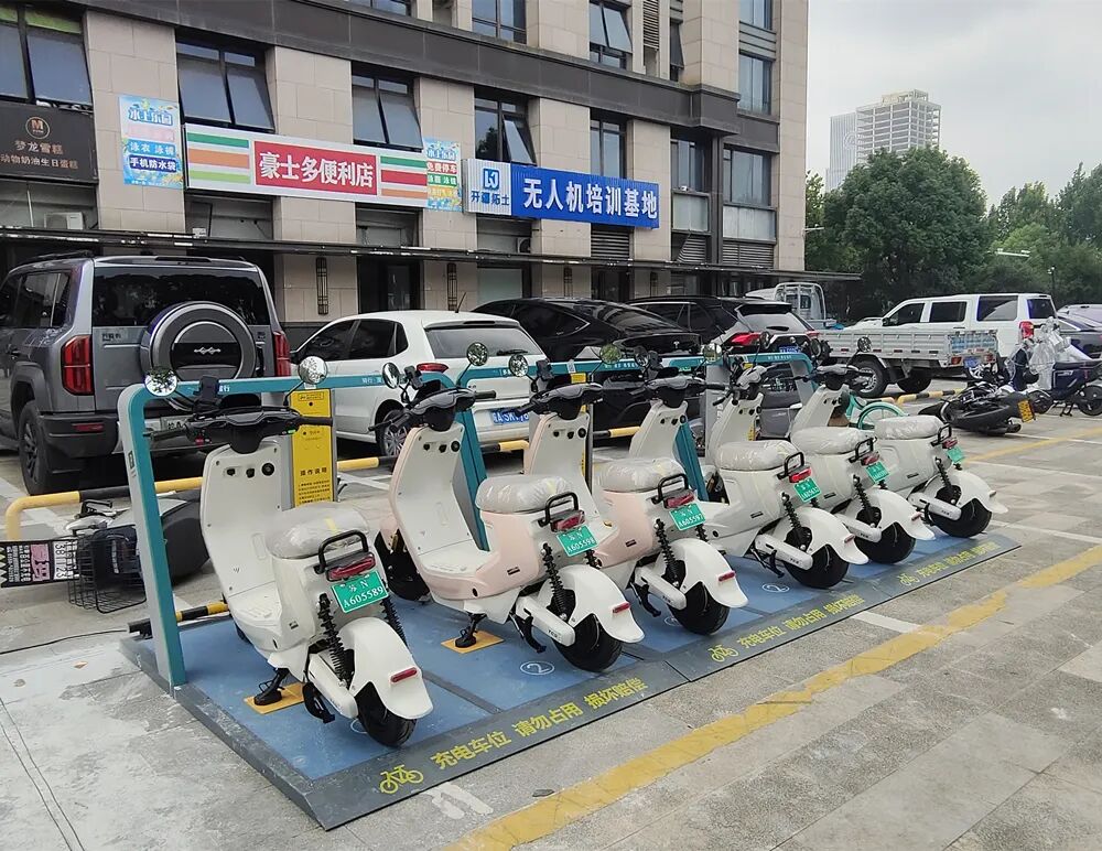【宿遷】中央廣場“吾限充”電動自行車分時租賃+無線充電樁實景案例